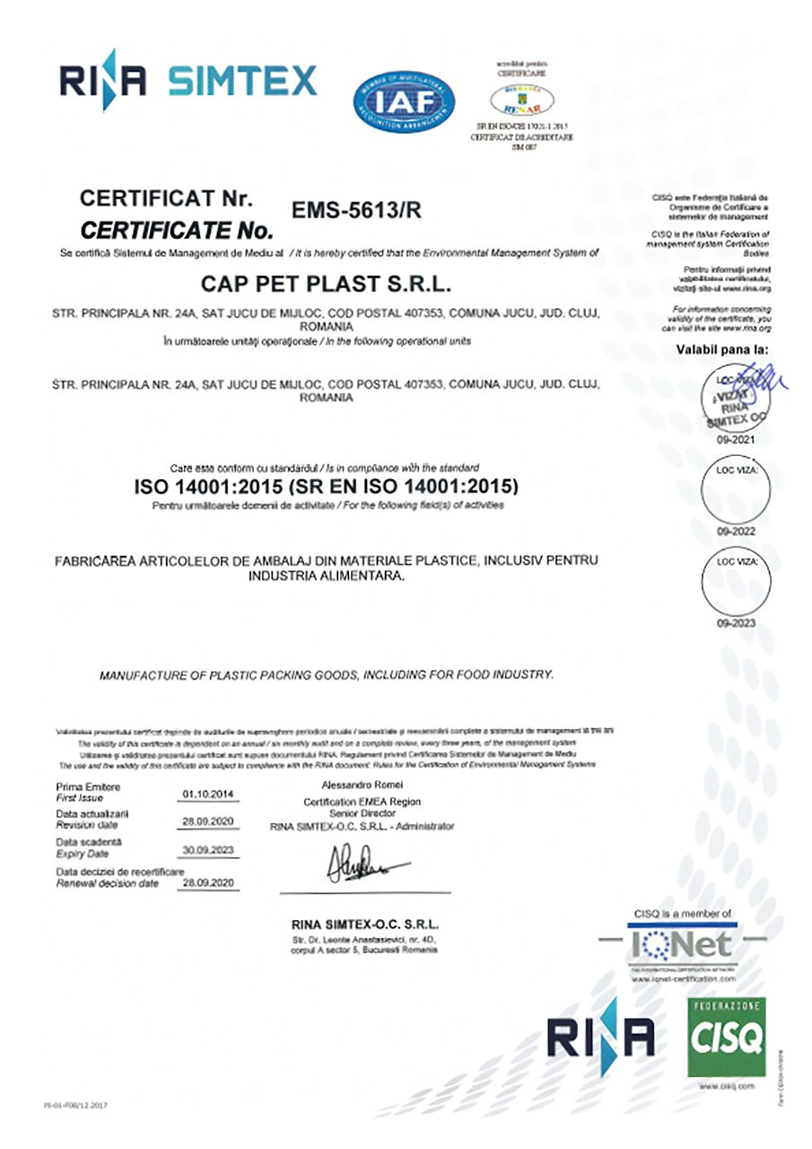 Ne-am început activitatea în 2010, sub numele de CAP PET PLAST, din dorința de a înființa un brand românesc în această ramură de business. Încă de la înființare, am fost profund atașați ideii de responsabilitate în afaceri, operând conform tuturor standardelor de mediu, morale, etice și legale în vigoare.